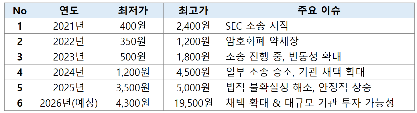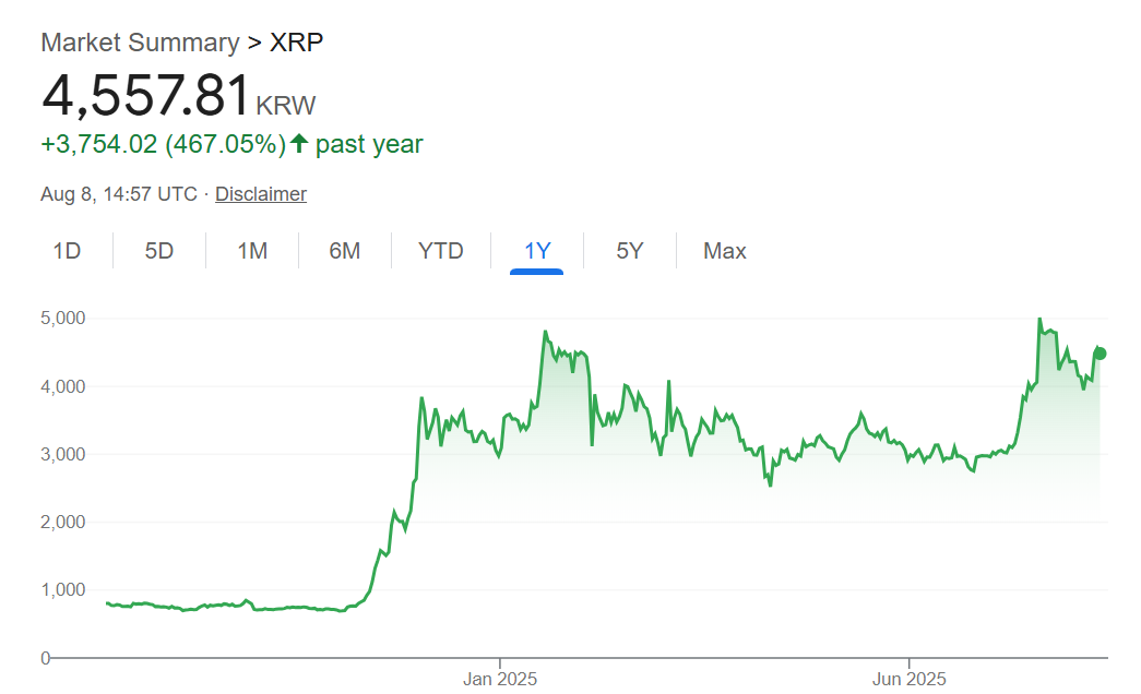 최근 몇 개월 동안 리플은 4,000원 초반대에서 안정적인 흐름을 보이고 있습니다. 이는 SEC와의 소송이 대부분 마무리되며 불확실성이 줄어든 영향이 큽니다.