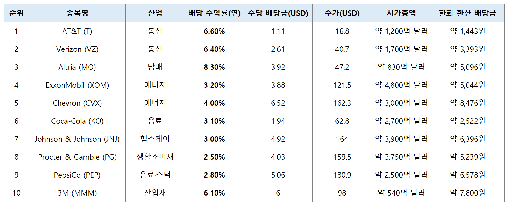 오늘은 2025년 기준 미국 배당주 순위를 살펴보고, 각 종목의 특징과 투자 포인트를 정리해 드리겠습니다.