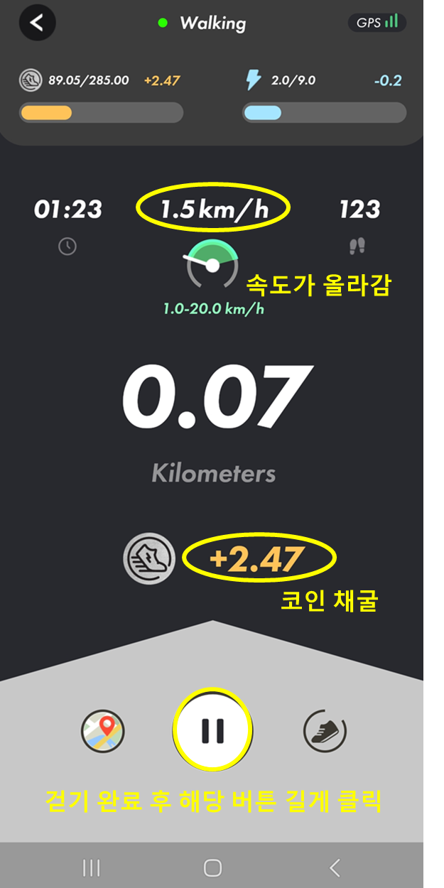 3단계 - 더 이상 그만 걸으려면 스톱 버튼 길게 눌러 끝내기