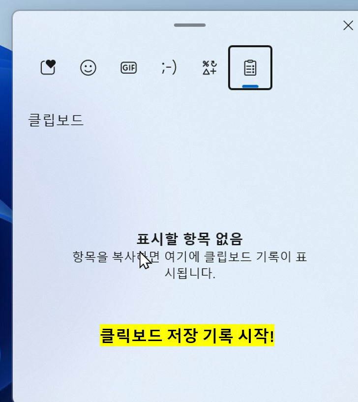 1단계 : Ctrl+V 입력 후 클립보드 기록 켜기 클릭