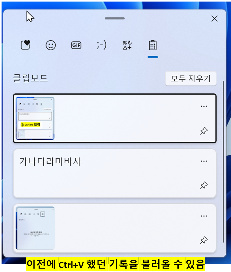 3단계 : 이전에 Ctrl+V 했던 기록들을 불러 올 수 있음