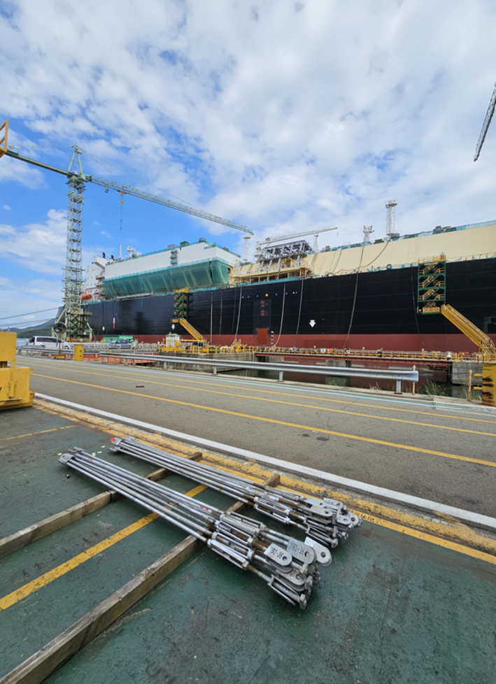 첫날 배정받은 현장은 LNG선 내부 철거 작업 현장이었고, 팀원은 약 30명. 그중 한국인은 5명 정도였고 대부분 러시아계 외국인이었습니다. 먼지, 소음, 낙하물 등 삼박자를 갖춘 최악의 작업환경에서 1층 구조물 포장부터 시작했습니다.