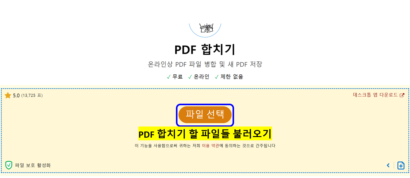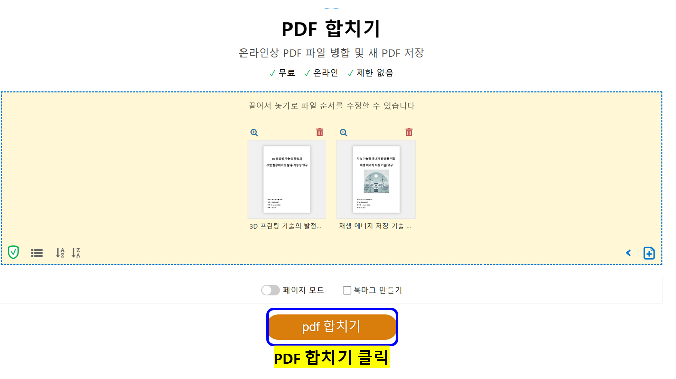 그런 다음 아래쪽에 있는 ‘PDF 합치기’ 버튼을 누르면 됩니다!