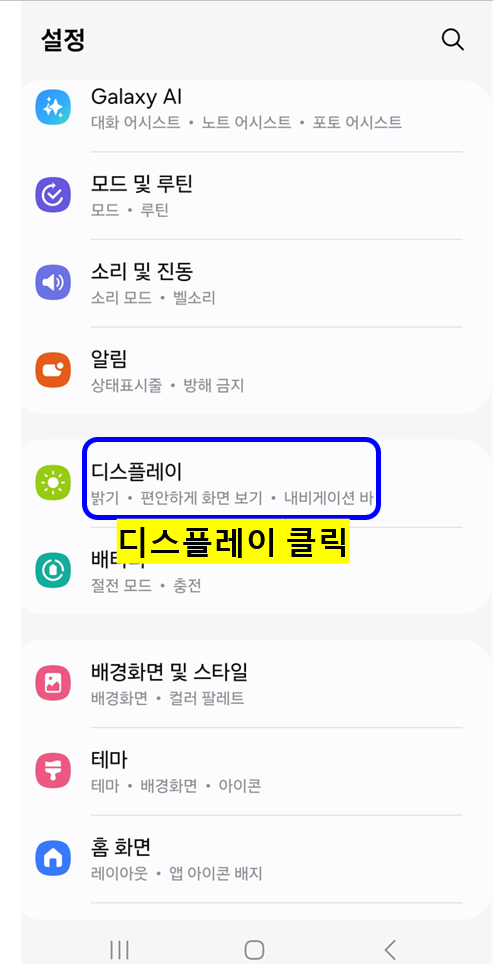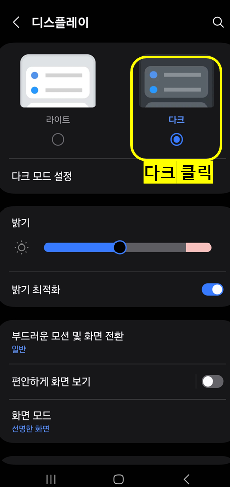 - 설정 → 디스플레이 → 다크 모드 켜기
