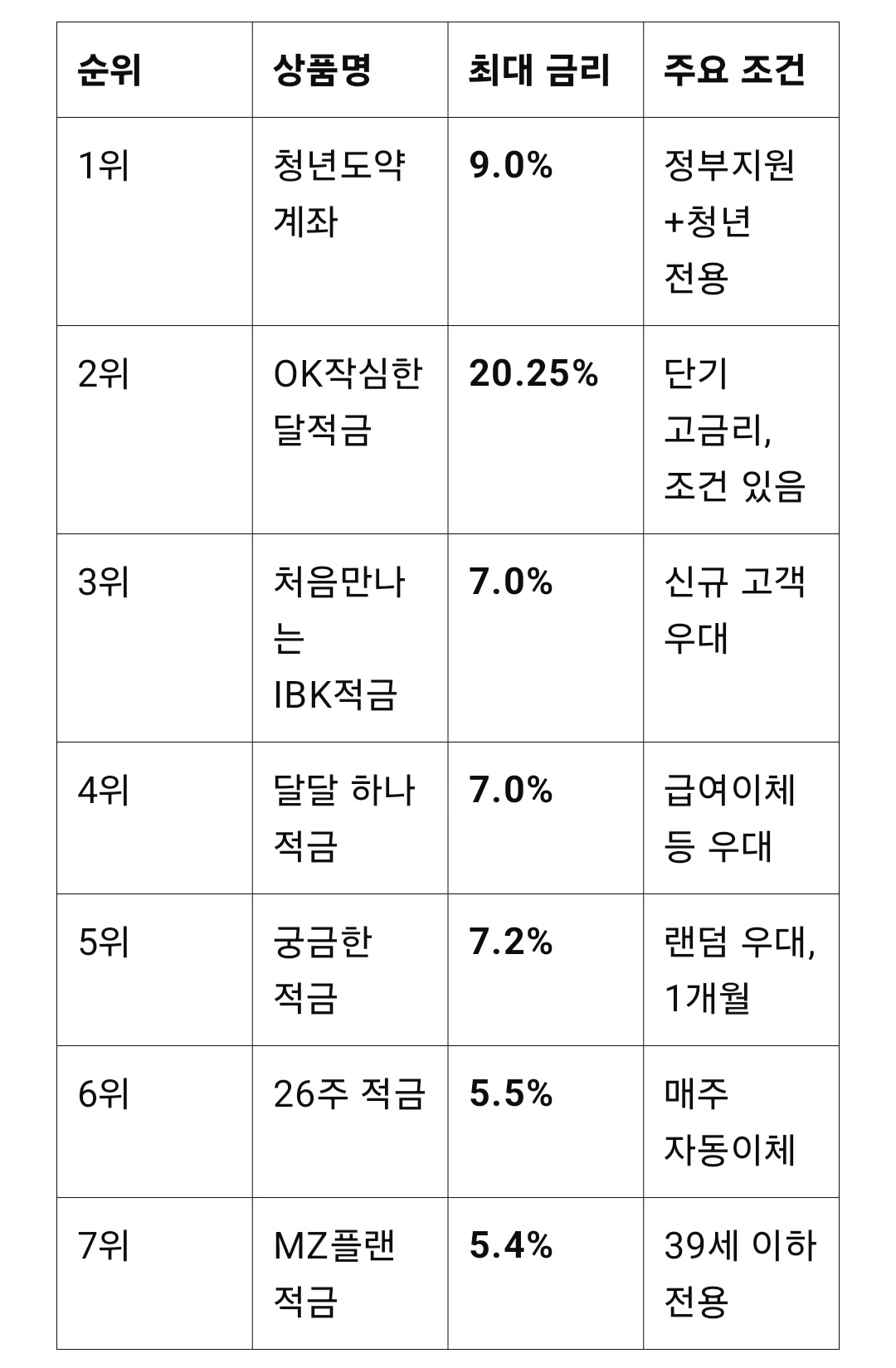 지금부터 2025년 기준, 금리 높은 적금 상품 7가지를