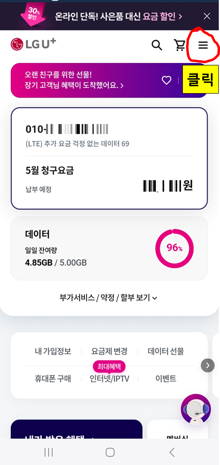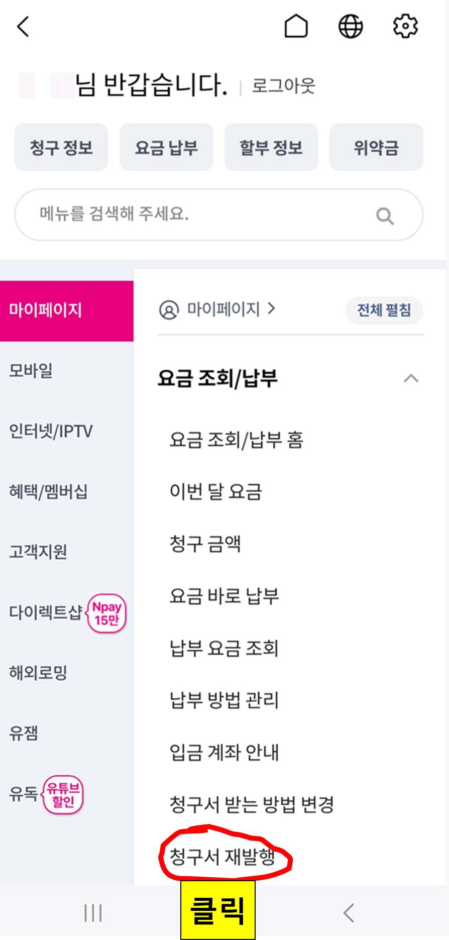핸드폰 요금 납부확인서 출력하기 - 엘지유플러스 앱