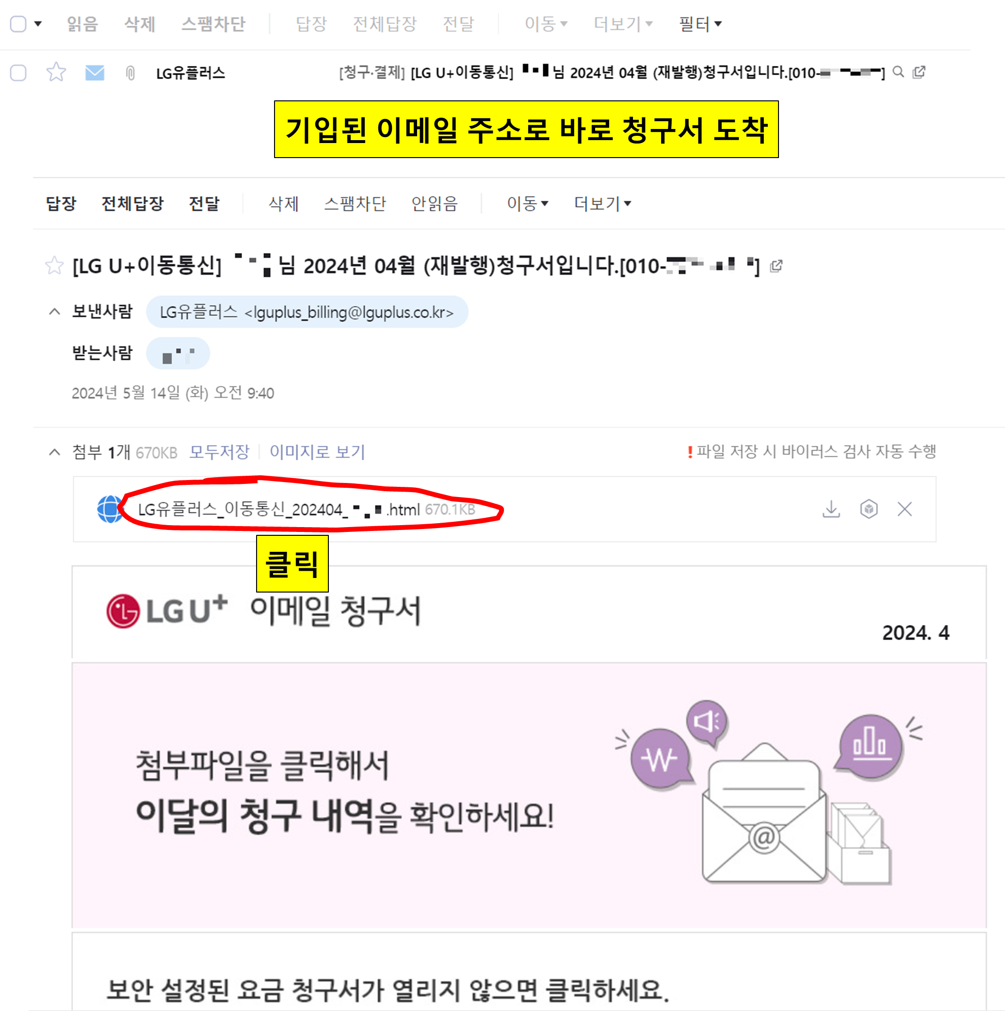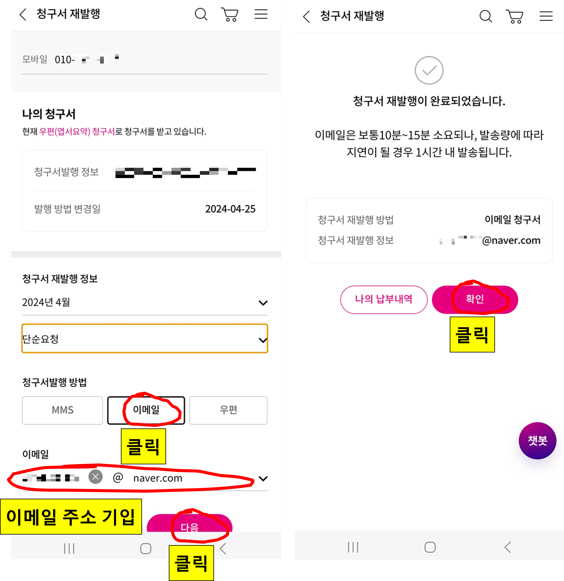 7. 기입한 이메일 주소로 바로 청구서 도착