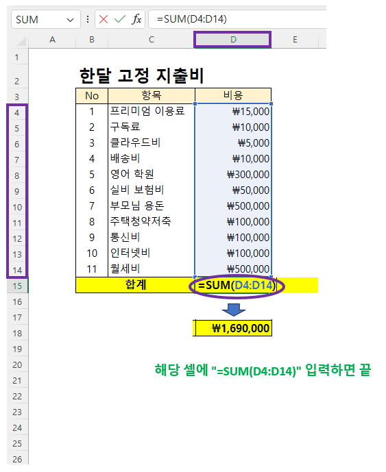 안녕하세요! IT 튜토리얼입니다. 엑셀에서 가장 기본이 되는 SUM 함수 사용법에 대해 알아보겠습니다. 엑셀 합계 SUM 함수 사용법 ■ 목차 1. SUM 함수란 무엇인가? 2. SUM 함수 사용법 3. SUM 함수 사용 시 주의 사항 ======================================================================================= 1. SUM 함수란 무엇인가? 선택된 범위의 숫자나 날짜들의 합계를 구할 수 있는 함수 예를 들어 1+1+1=3에서 숫자 3을 자동으로 합계를 구해주는 기능을 합니다. 오로지 덧셈과 뺄셈 기능만 수행 가능한 함수 입니다. 정말 편하죠! 2. SUM 함수 사용법 정말 간단합니다! 엑셀에서 합계를 구하고자 하는 범위를 "..